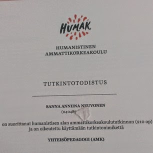 Valmistuin! Aivan mahtavat vajaa neljä vuotta takana. Oon kokenut niin paljon tän koulun aikana ja ei kaduta yhtään, että lähdin Humakkiin. Vaikka välillä olikin aika tuskaa, niin positiivisia kokemuksia on niin paljon enemmän ja oon tavannut ihan huikeita tyyppejä koulun kautta <3